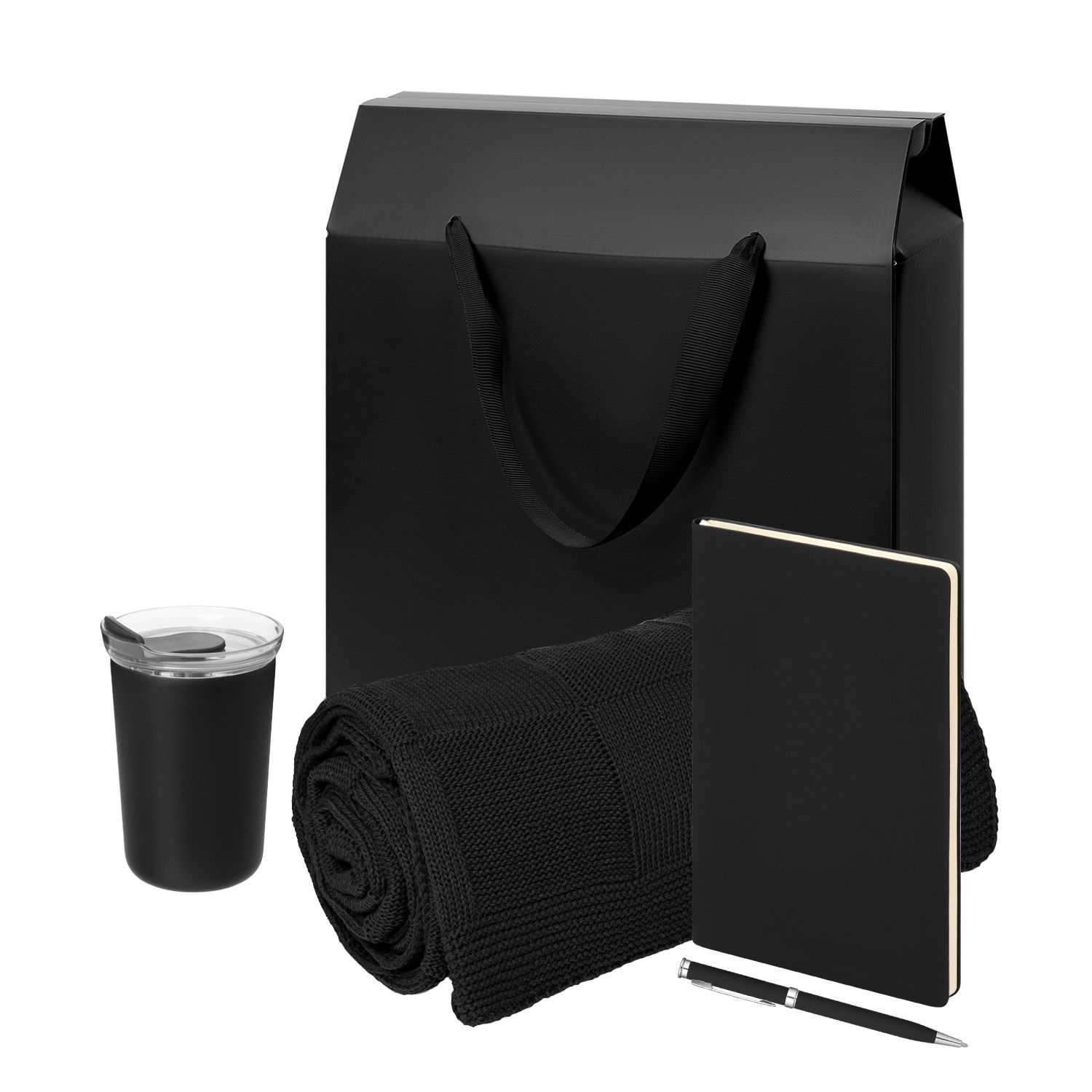Подарочный набор Велком Пак Спарк (Welcome Pack Spark), черный (термокружка,ежедневник, ручка, плед, коробка-пакет)