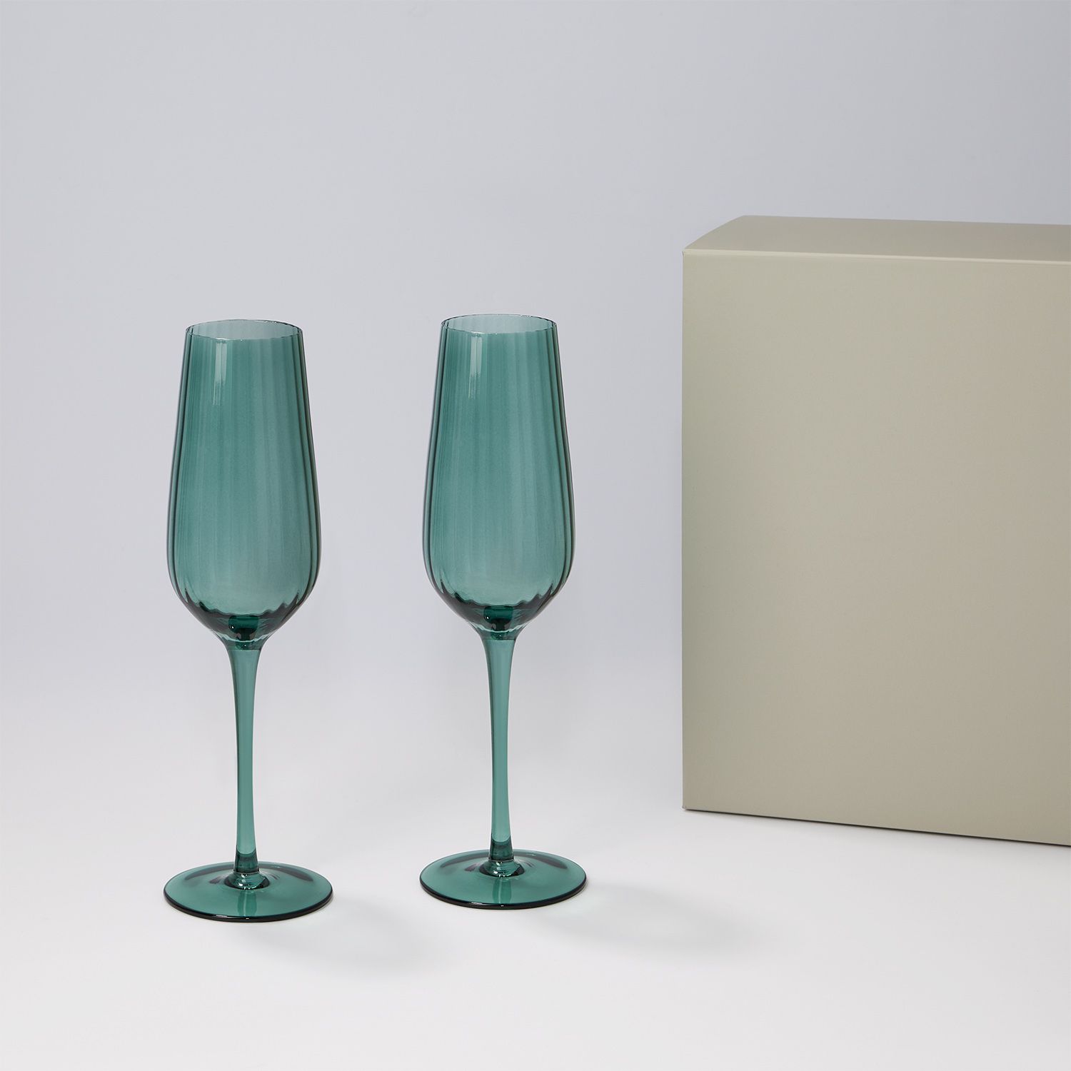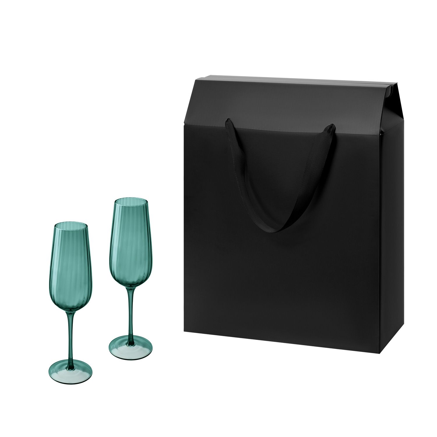 Подарочный набор 2 бокала для шампанского Эмеральд (Emerald) в черной коробке
