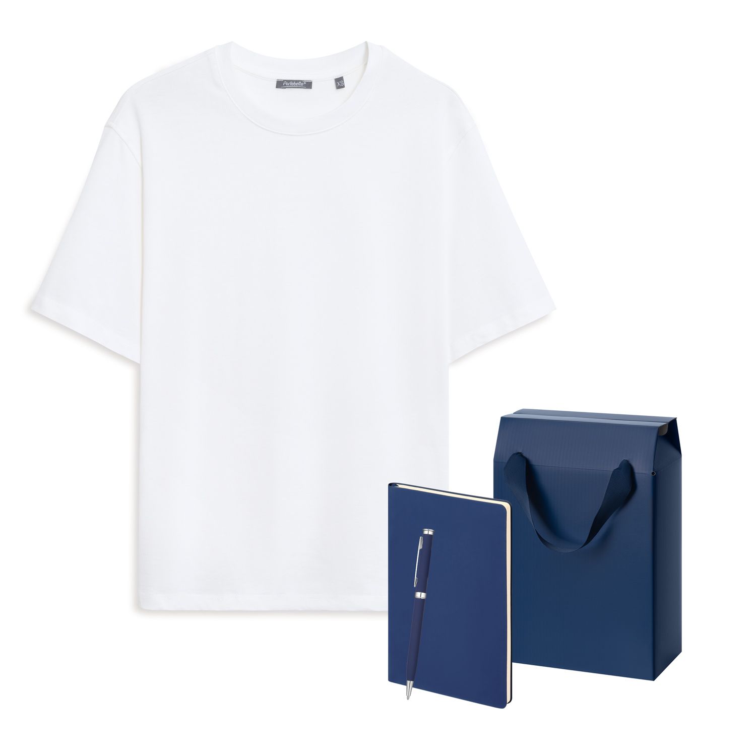 Набор с одеждой Раст (Rust) (футболка, ежедневник, ручка), белый/синий, M/L